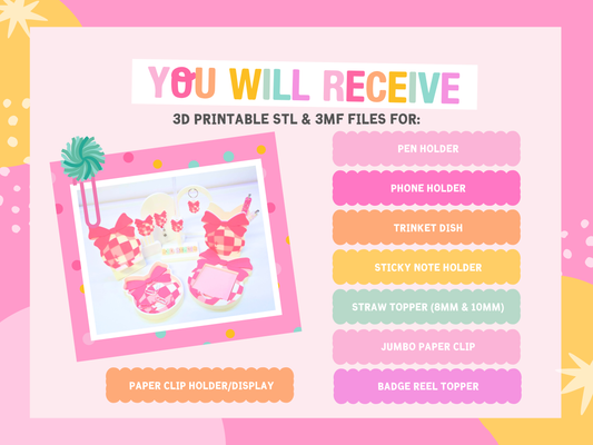 Bow Pumpkin 3D Print File Bundle | Pen Holder, Sticky Note Holders, Straw Toppers, Paper Clip | STL & 3MF Digital Download