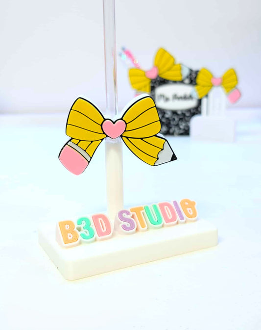 Pencil Bow Straw Topper 3D Print File (STL & 3MF Digital Download) 8mm + 10mm Sizes