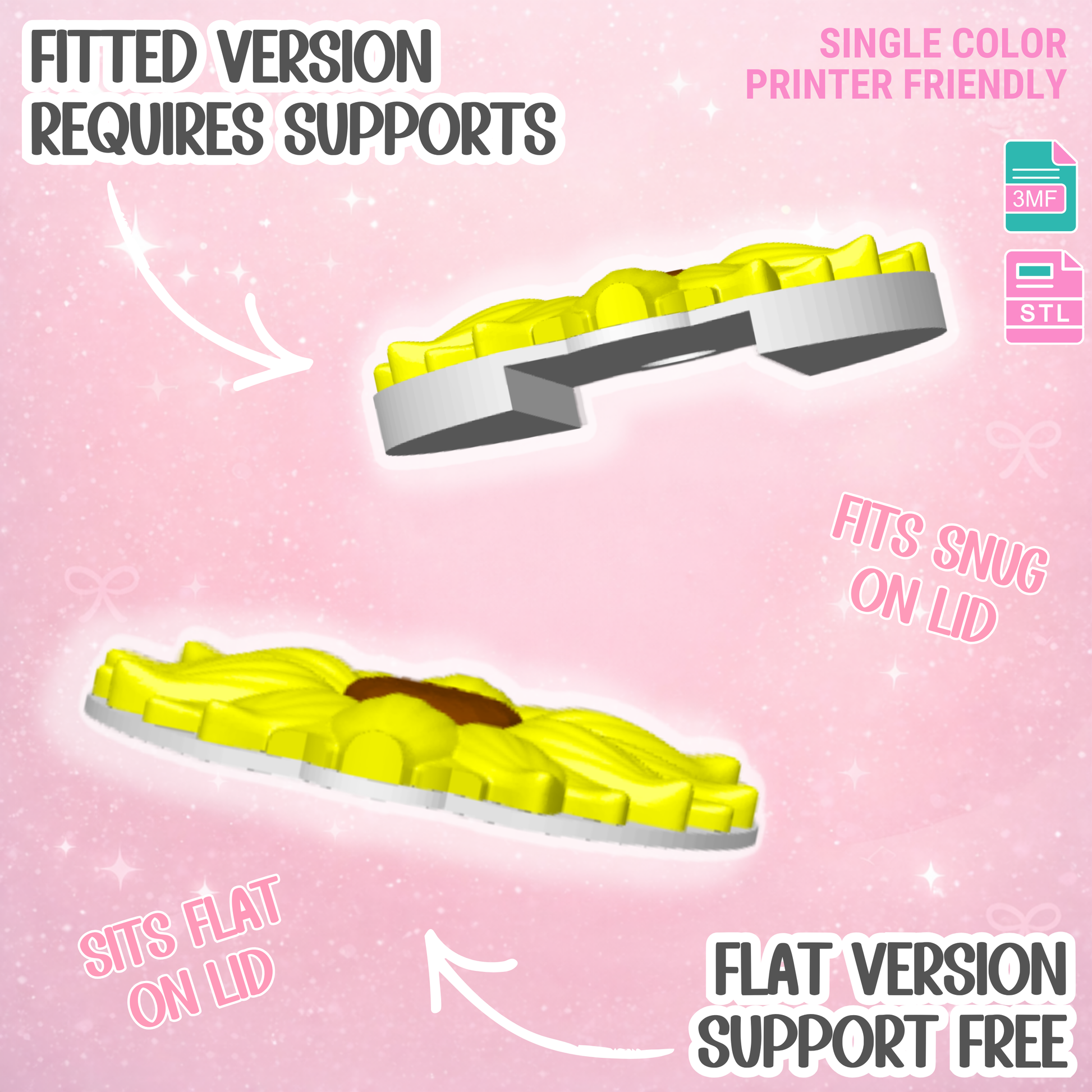 -40oz Sunflower Lid Topper - Fitted (Requires Supports) and Flat Versions (Support Free)