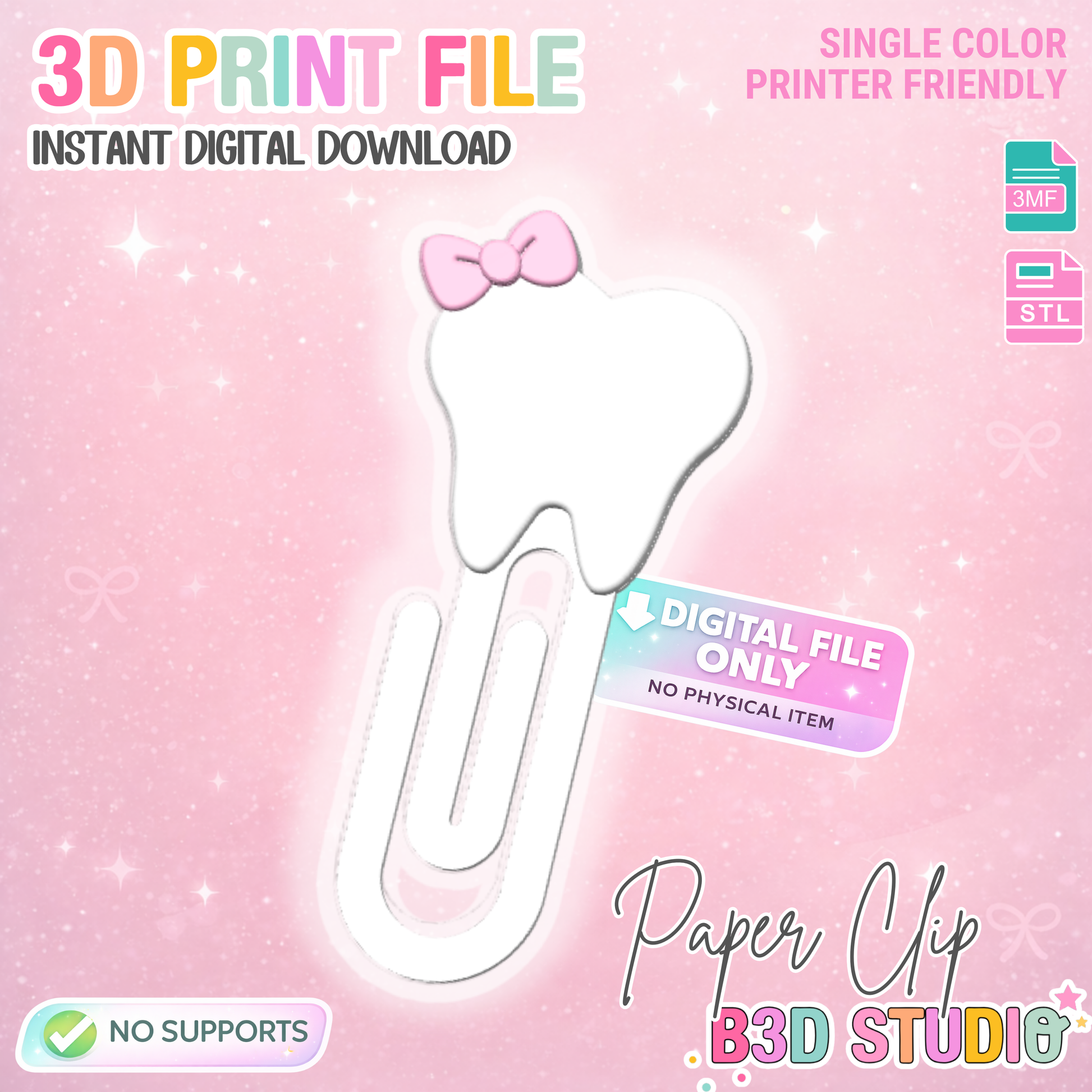 🦷Bow Tooth Jumbo 3D Print Paper Clip STL & 3MF Files🦷
