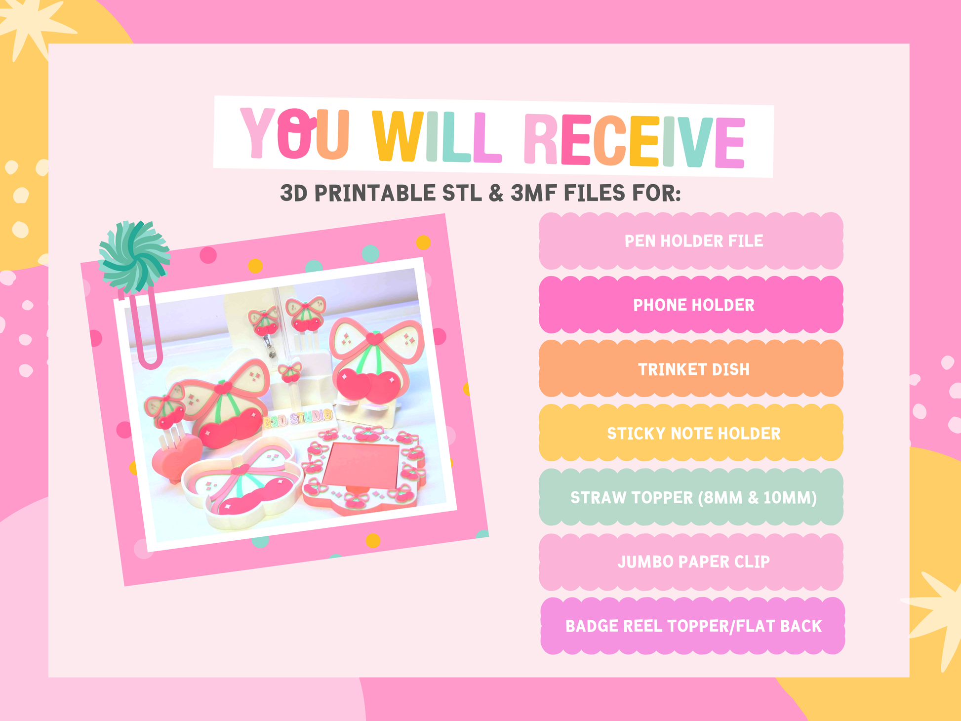 Cherry Bow Heart 3D Print File Bundle: Pen Holder, Badge Reel (STL & 3MF Digital Download)
