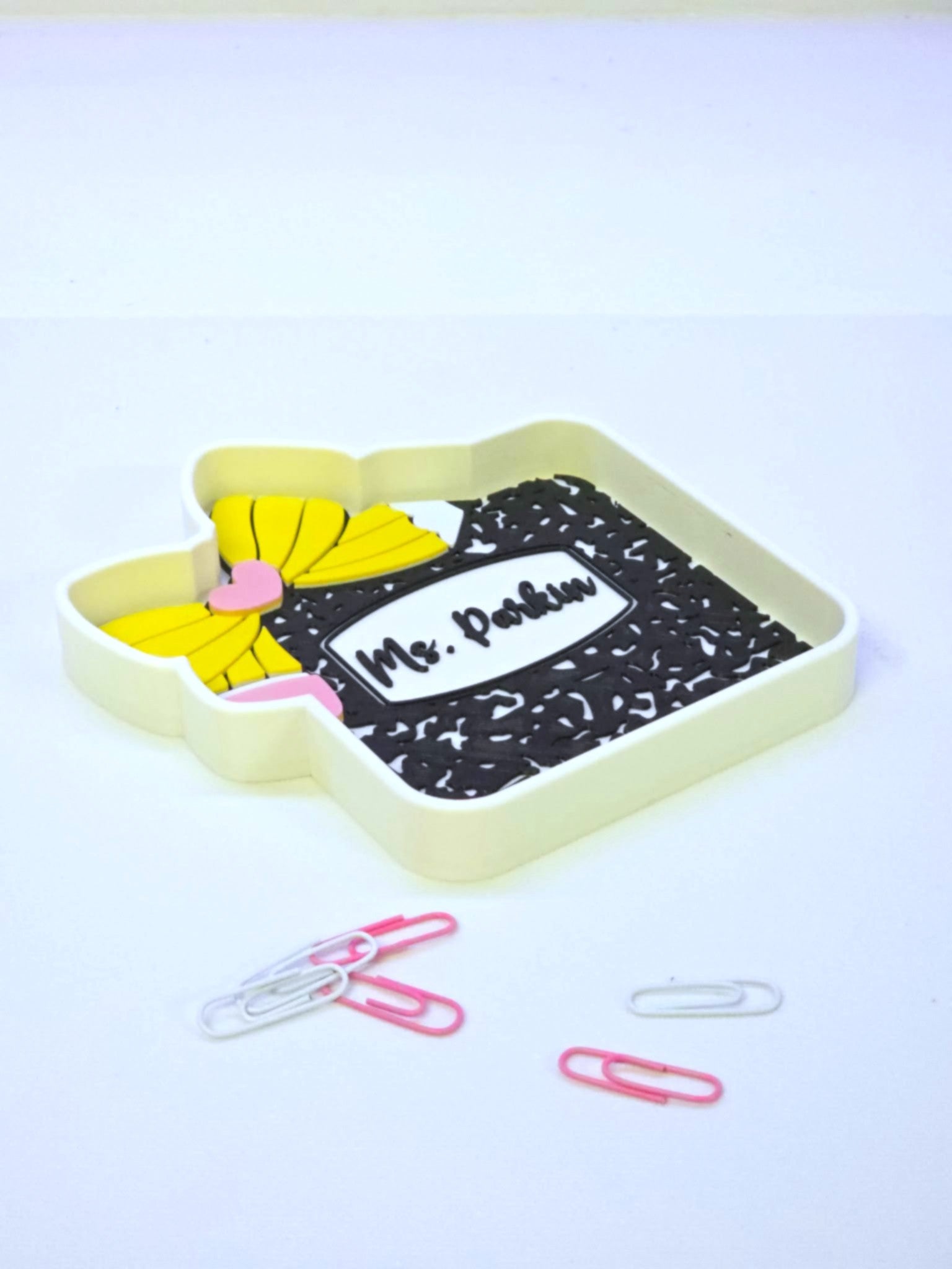 Composition Pencil Bow Trinket Dish STL & 3MF File – 3D Print Desk Organizer (Digital Download)
