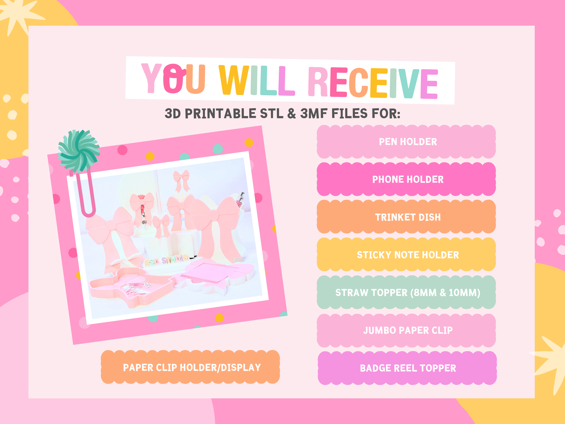 Coquette Bow 3D Print File Bundle : Desk Organizer (STL & 3MF Digital Download)