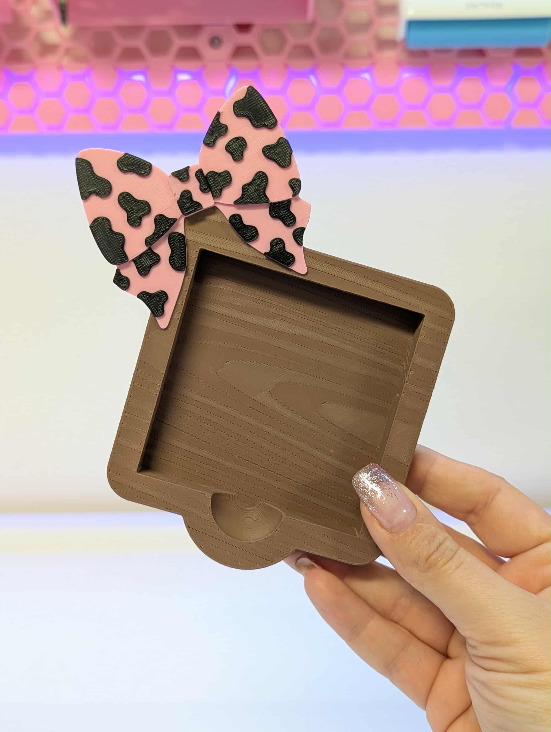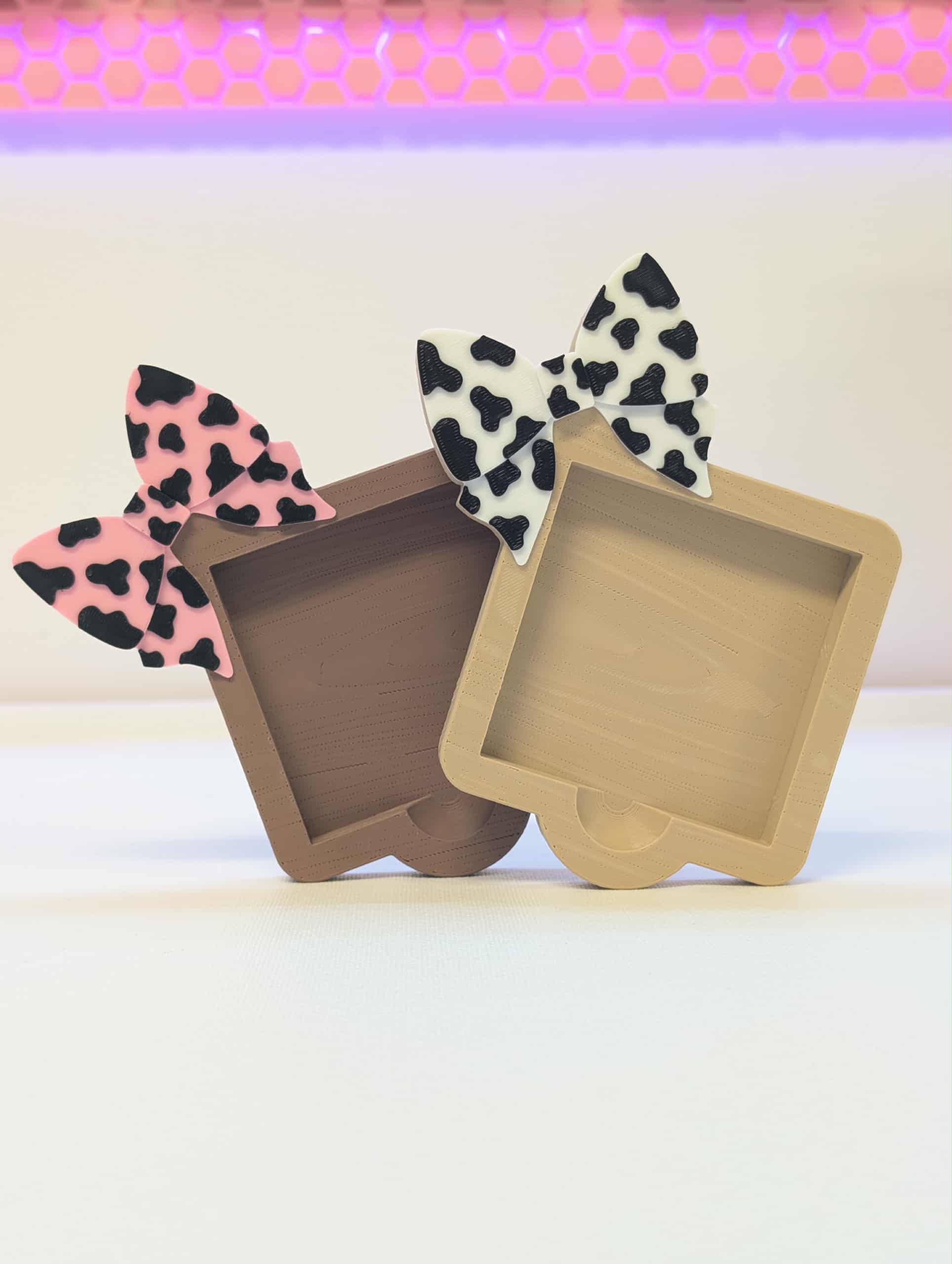 Cow Print Bow Wood Sticky Note Holder: 3D Print File (STL/3MF Digital Download)