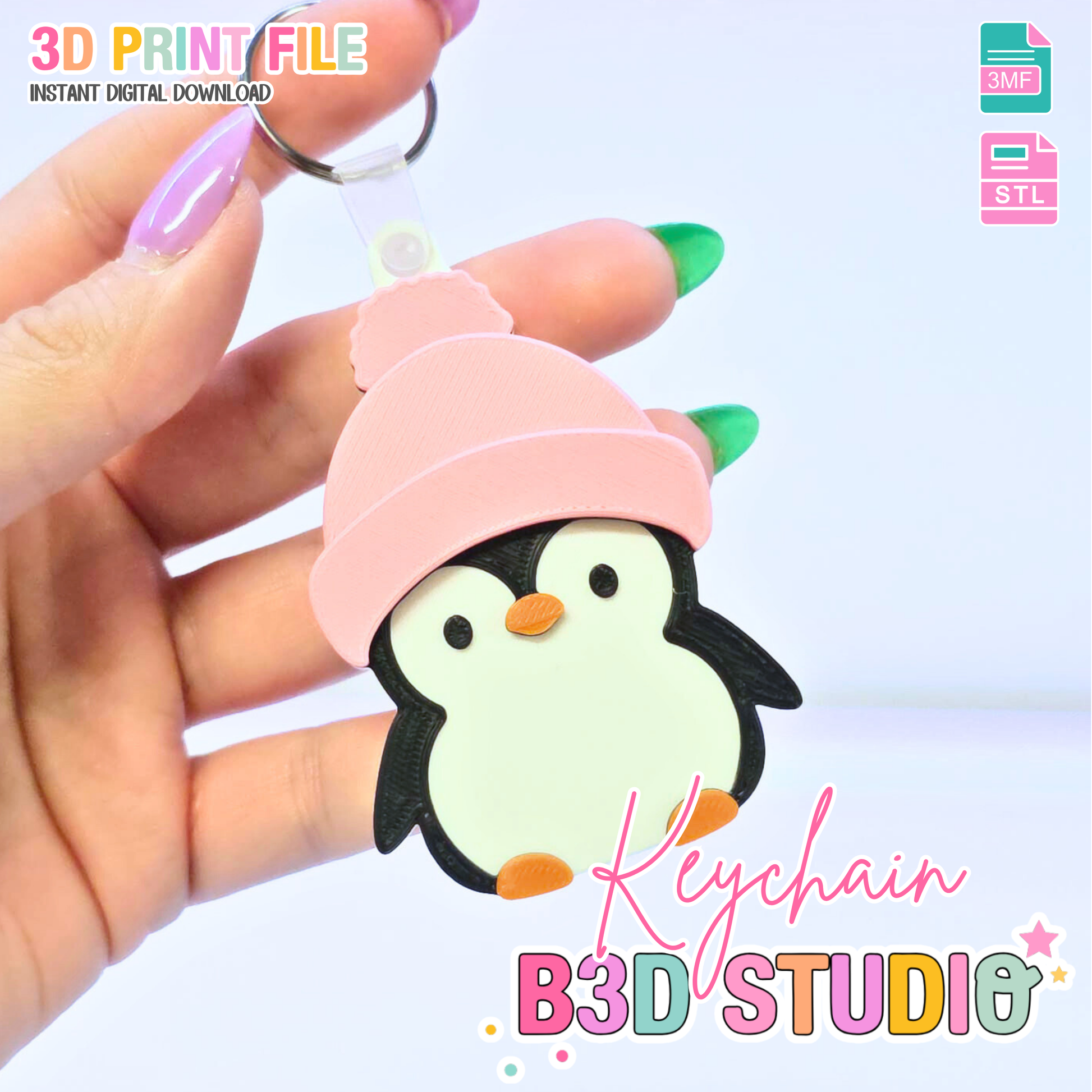 Cute Penguin NFC Keychain STL/3MF File: 3D Print File