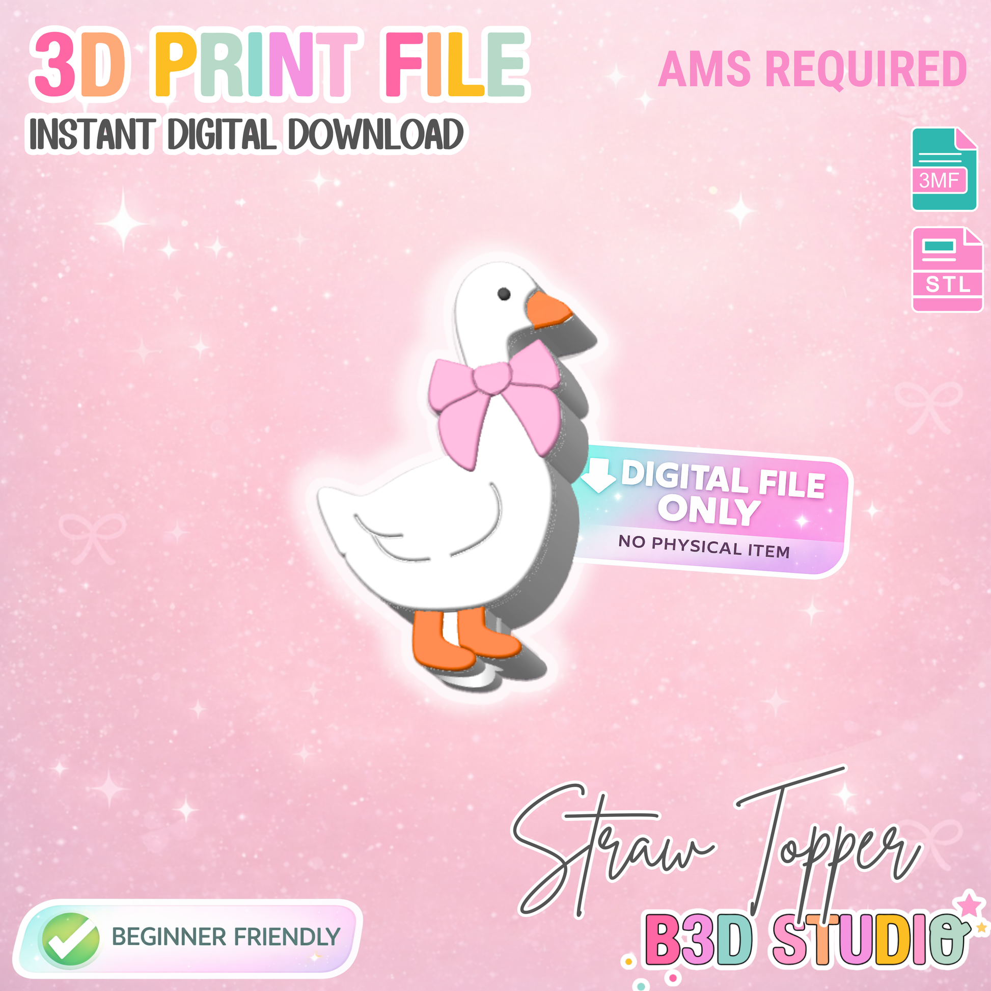Goose Bow Straw Topper 3D Print File (STL & 3MF Digital Download) 8mm + 10mm Sizes