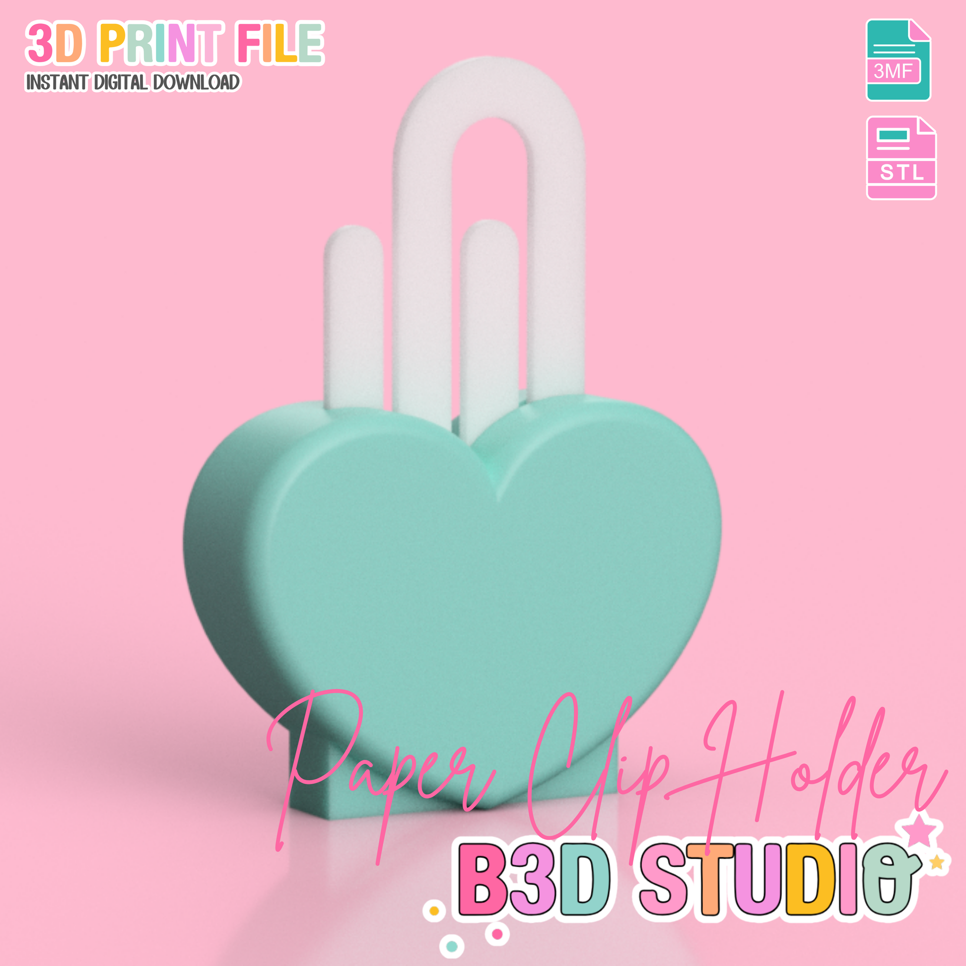 Heart Paper Clip Holder/Display 3D Print File (STL & 3MF Digital Download)