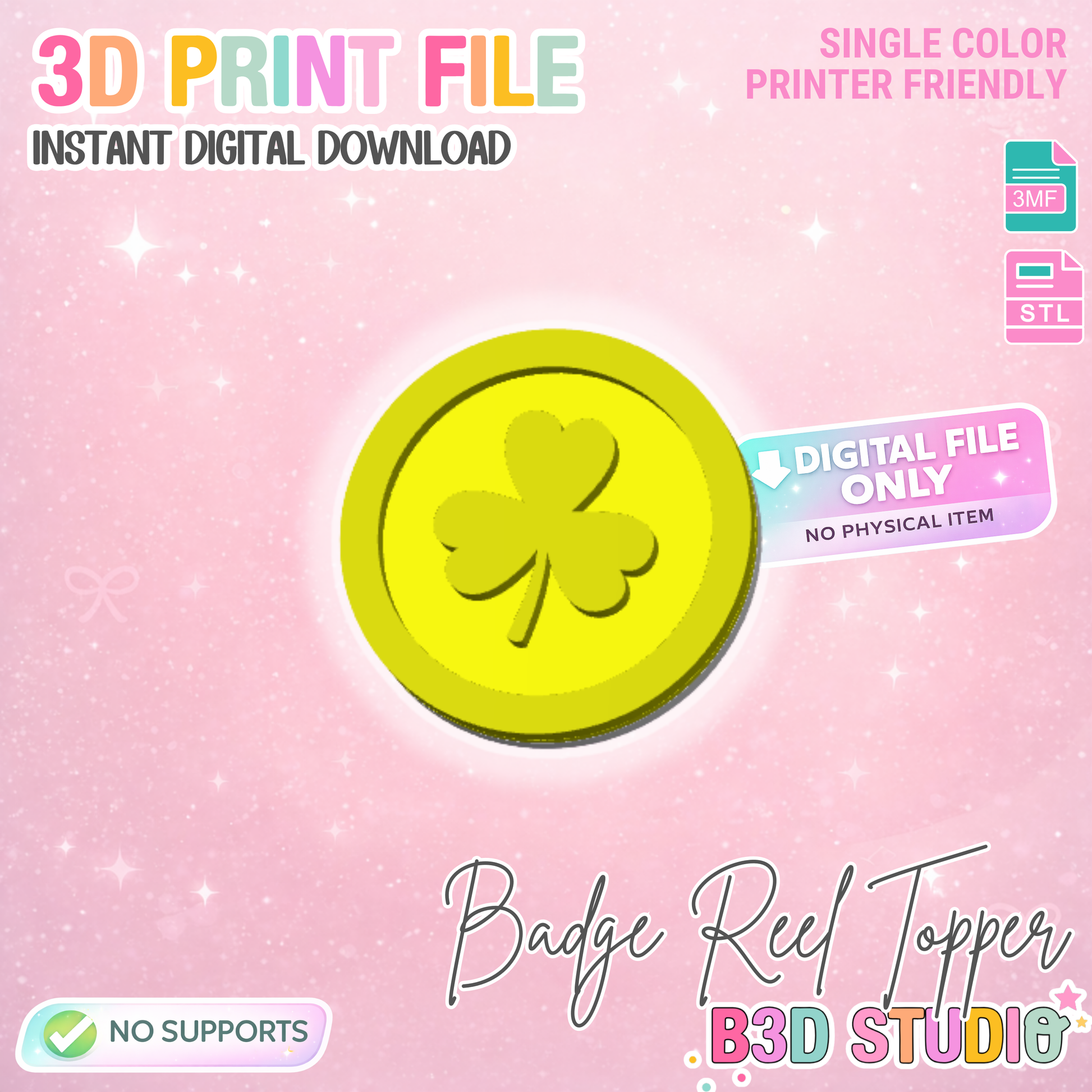 Lucky Clover Coin Badge Reel Topper Flat Back Embellishment (STL & 3MF Digital Download)