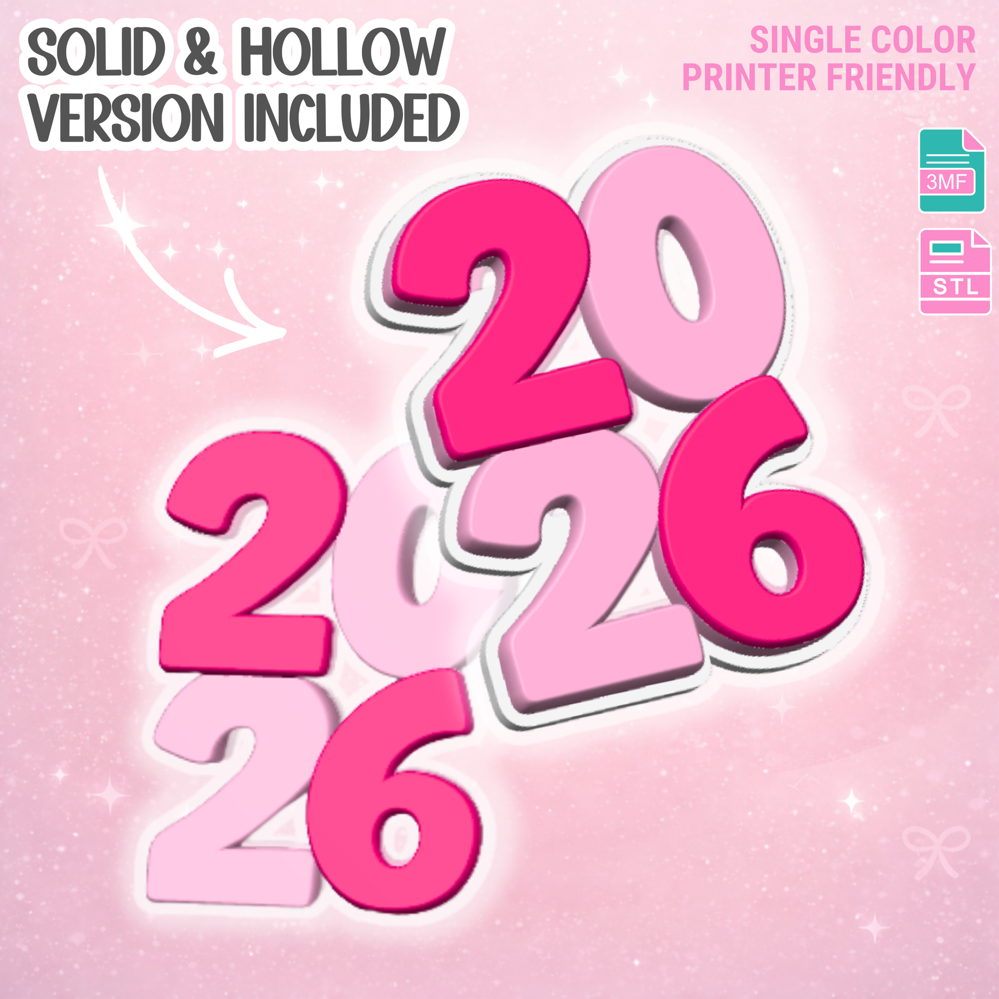 New Year 2026 Badge Reel Topper Flat Back 3D Print File (STL & 3MF Digital Download)