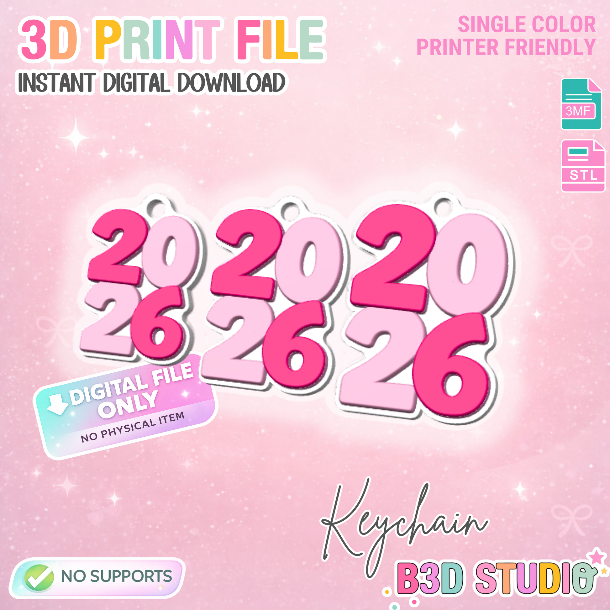 New Year 2026 NFC Keychain 3D Print File (STL & 3MF Digital Download)