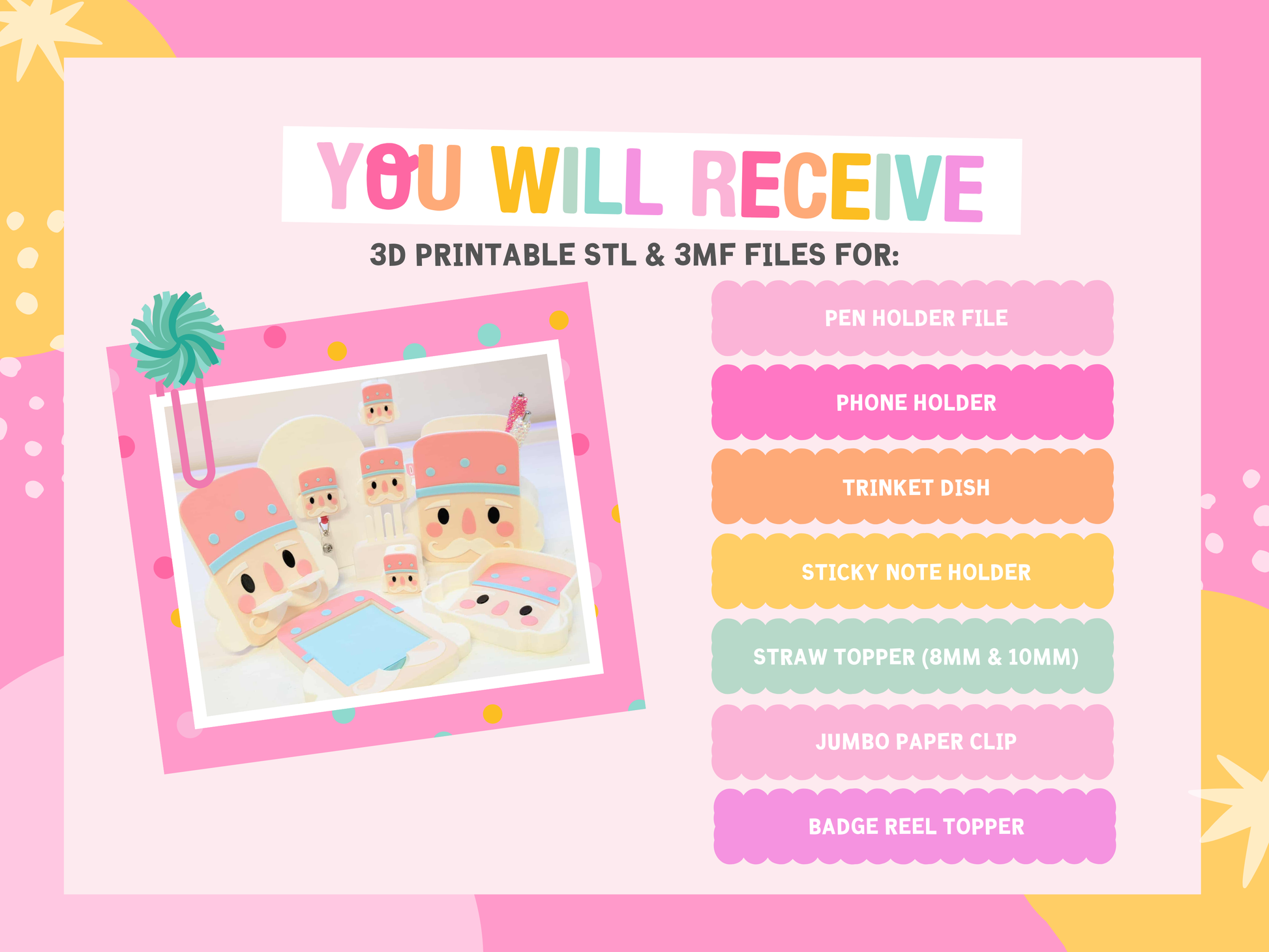 Nutcracker 3D Print File Bundle: Pen Holder, Phone Holder, More (STL & 3MF Digital Download)