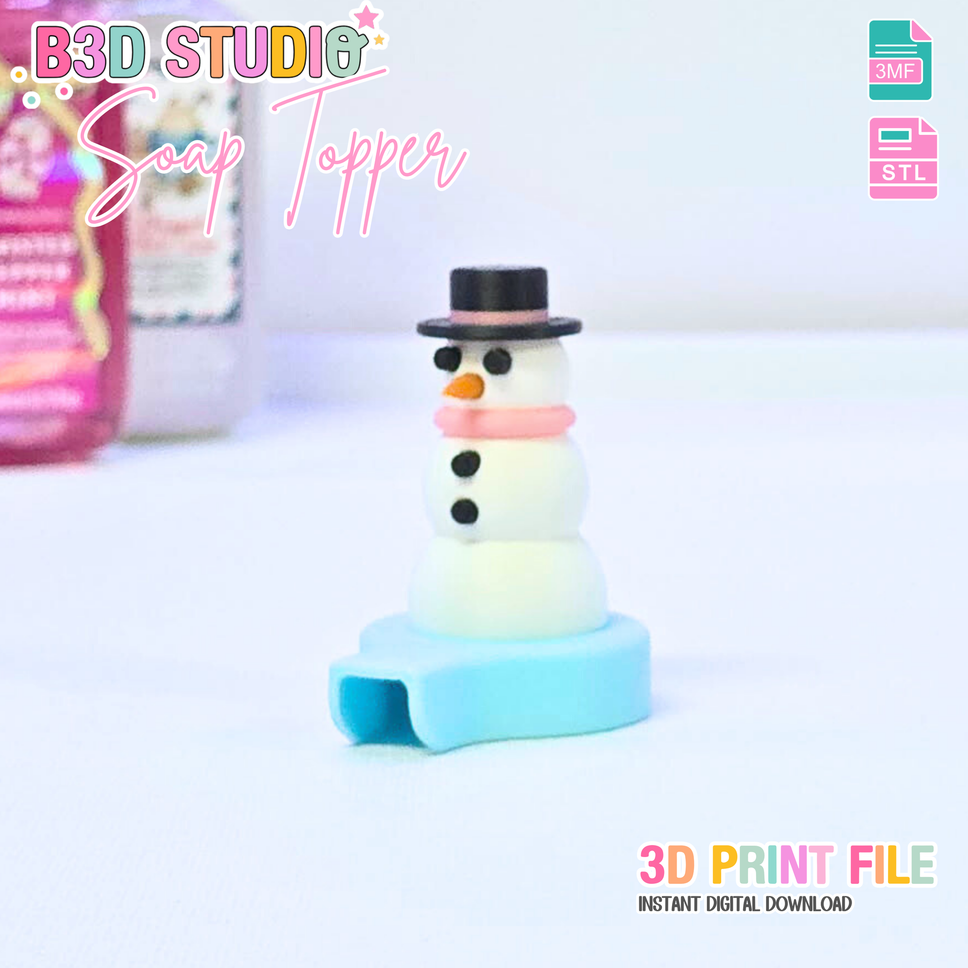 Snowman Soap Topper: 3D Print STL & 3MF File Gift (Digital Download)