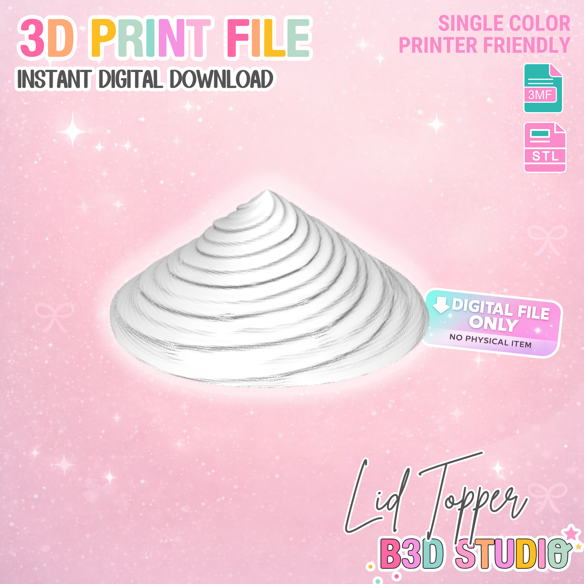 Whipped Topping Lid Topper – Cup Topper 3D Print File (STL & 3MF Digital Download)