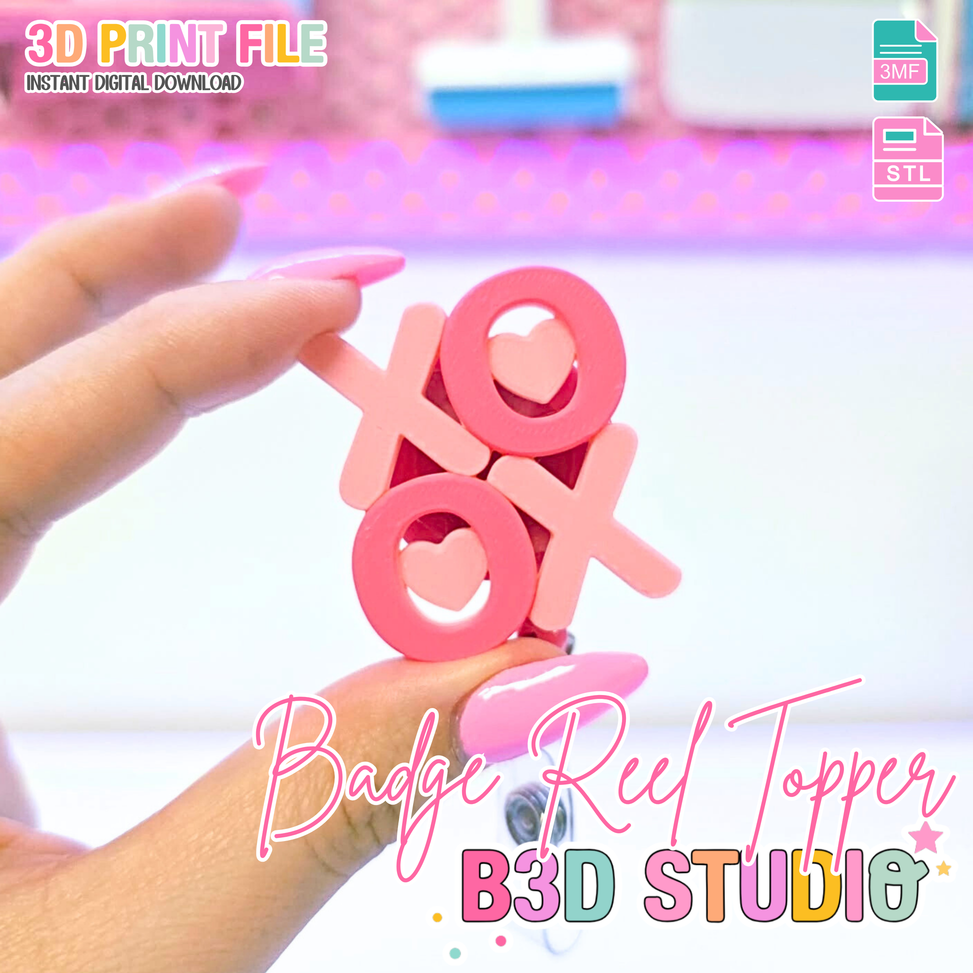 XO Hugs and Kisses Badge Reel Topper Flat Back 3D Print File (STL & 3MF)