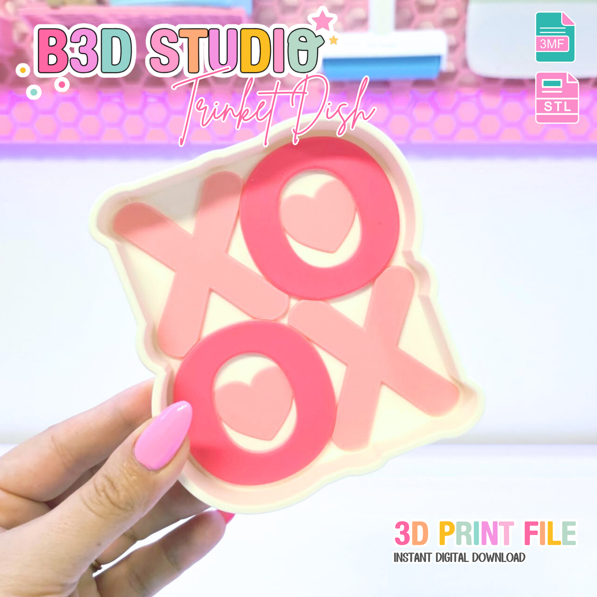 Makes the perfect addition to your organized office space, this delicate and useful trinket dish is designed with you in mind. Layered for Single or Multi-Color printers! 🩷